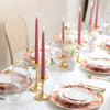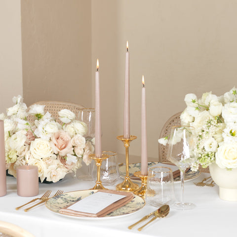 The timeless taper holder is the newest addition to the Yummi candles family of centerpieces, and it's the perfect way to add elegance to any event. The gold finish is beautiful and will complement any decor, while the staggered height creates a cascading effect that is sure to impress guests. This set includes 12" taper candles and can be used with all heights of taper candles and formal candles. The holder is also designed to fit Yummi 2.25 slim pillar candles, so you can create the perfect ambiance for your special occasion.