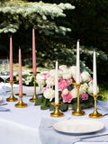 The timeless taper holder is the newest addition to the Yummi candles family of centerpieces, and it's the perfect way to add elegance to any event. The gold finish is beautiful and will complement any decor, while the staggered height creates a cascading effect that is sure to impress guests. This set includes 12" taper candles and can be used with all heights of taper candles and formal candles. The holder is also designed to fit Yummi 2.25 slim pillar candles, so you can create the perfect ambiance for your special occasion.