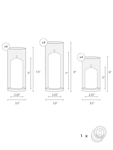 4 Cylinder Vases - 3.5"D x 7.5"H