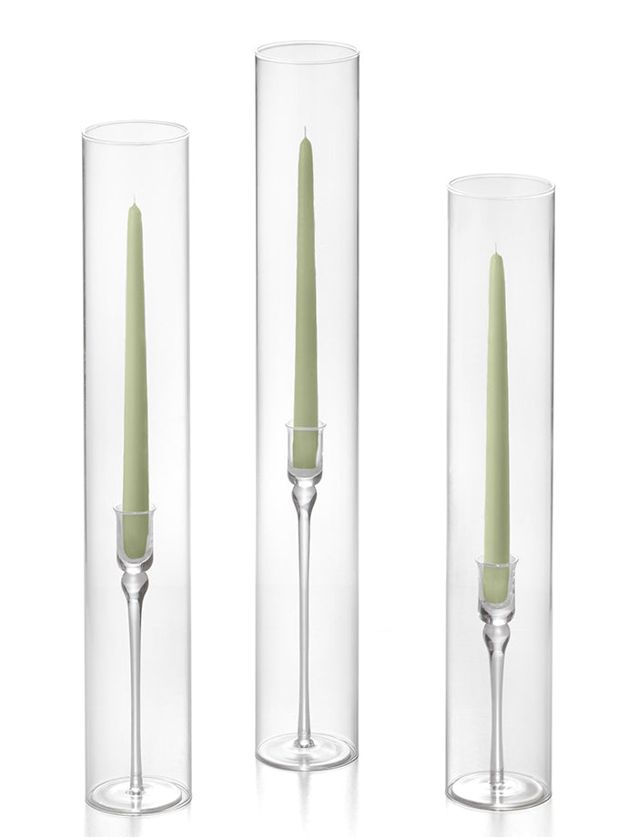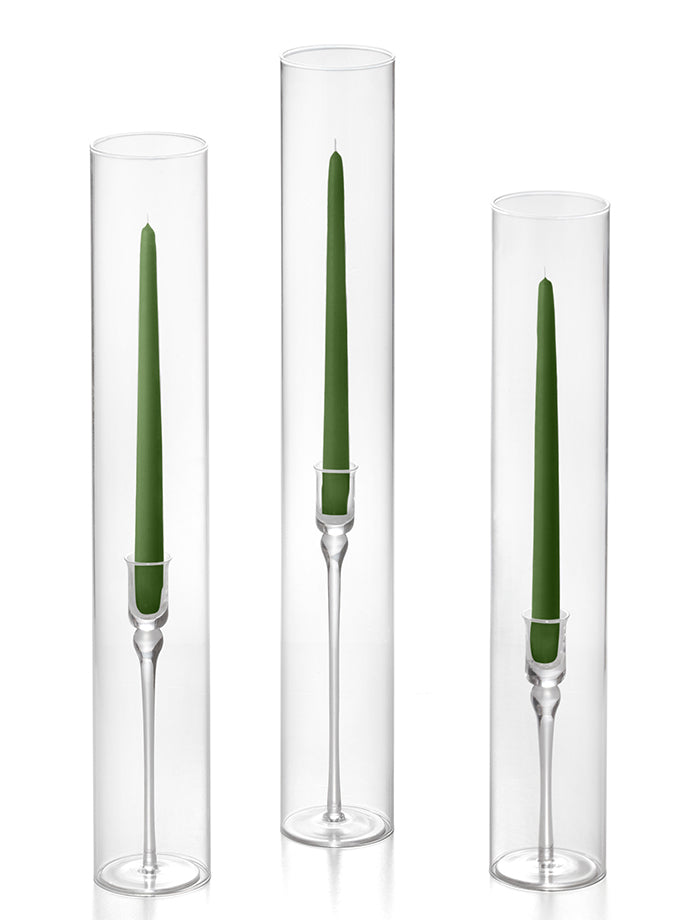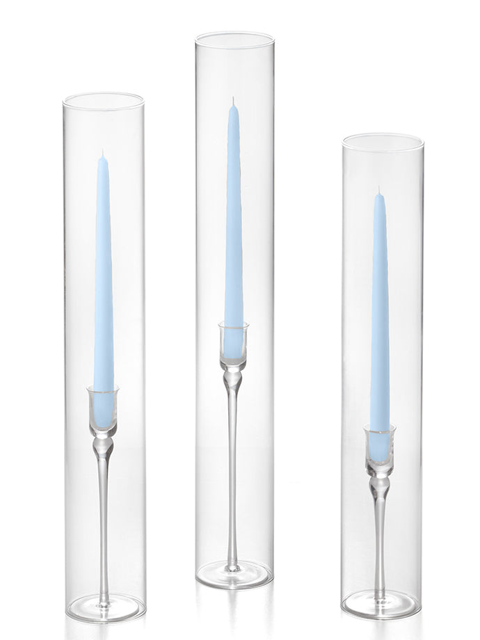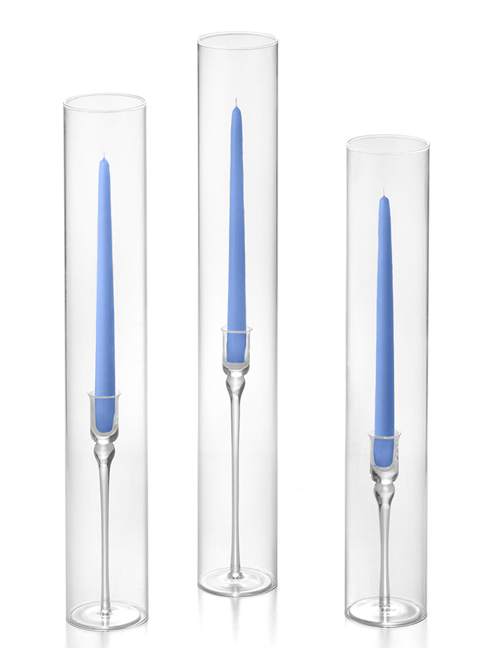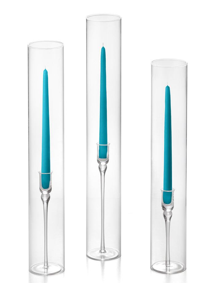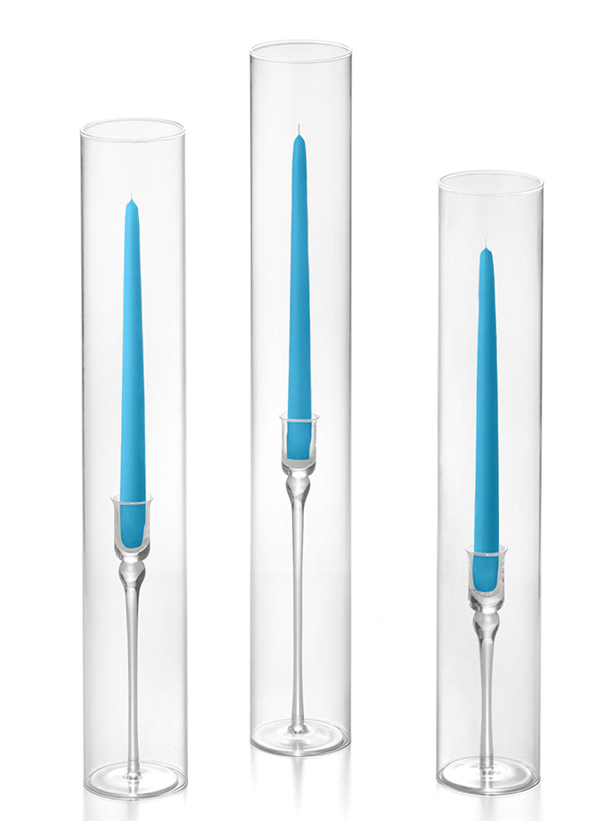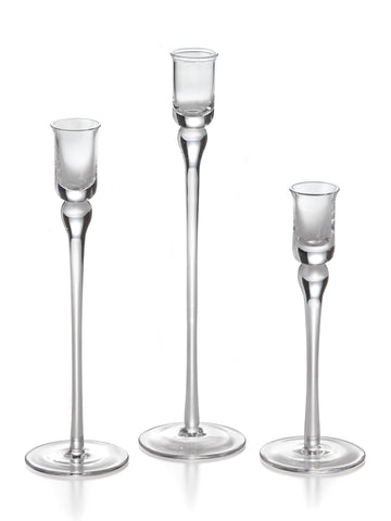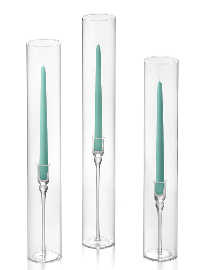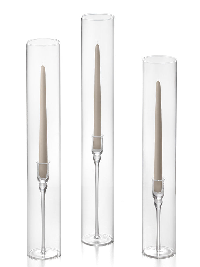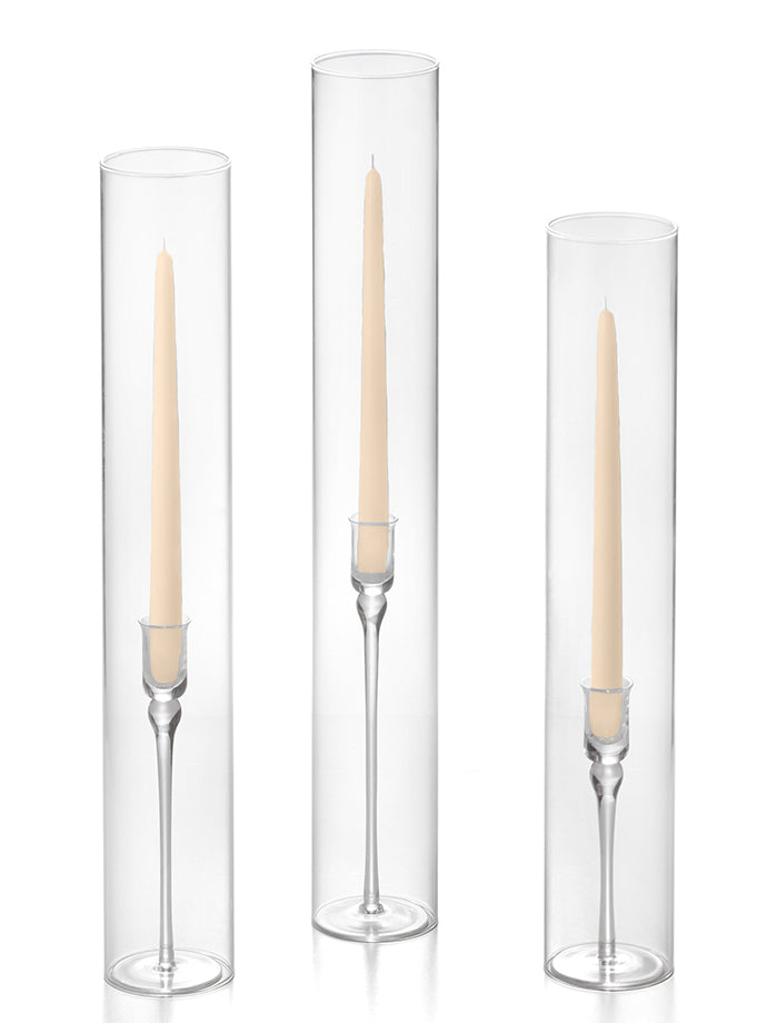 At the heart of this luxurious set are 12 stunning glass chimney holders, each featuring a taller, more dramatic design for a striking visual impact. The Aura holders' sleek glass finish adds a touch of contemporary allure that complements any décor, while their transparent beauty allows the flickering candlelight to dance freely, casting captivating patterns of light and shadow throughout your space. Whether it's a wedding, an intimate dinner, or a grand celebration, these holders deliver an understated yet powerful elegance.