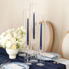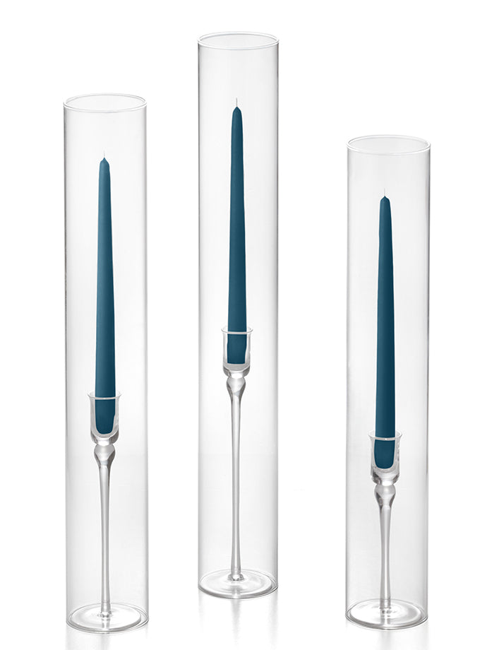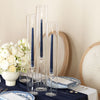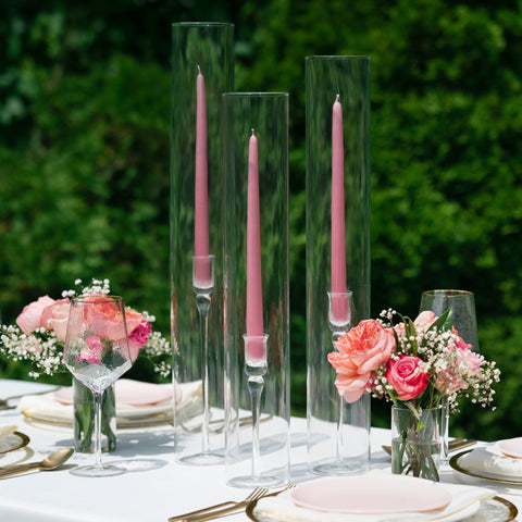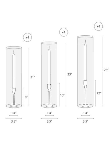 This set includes 12 hand-crafted taper candles designed to fit perfectly within the Aura's tall chimney holders. With varying heights, the candles create a dynamic, cascading display that draws the eye and enhances the atmosphere with warm, inviting light. Whether arranged symmetrically or in a more spontaneous layout, the staggered heights of the candles bring depth and interest to your centerpiece, turning any table into a stunning focal point.