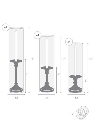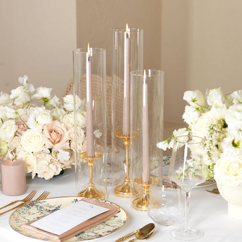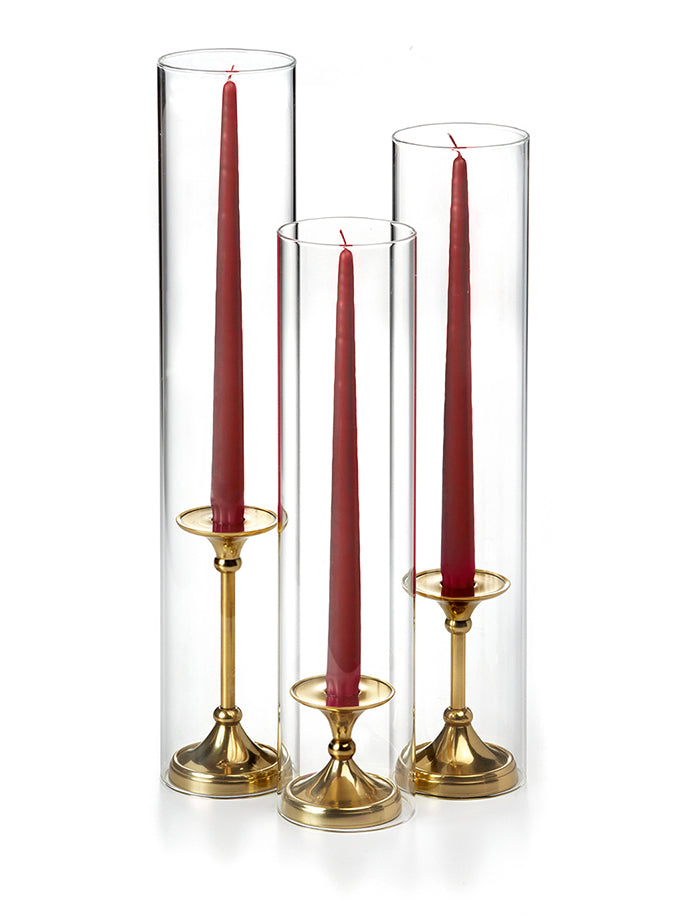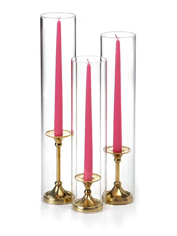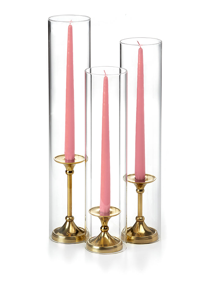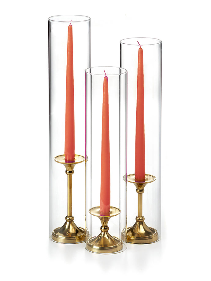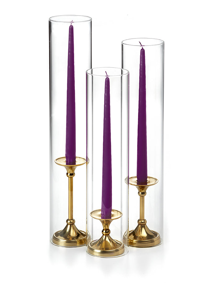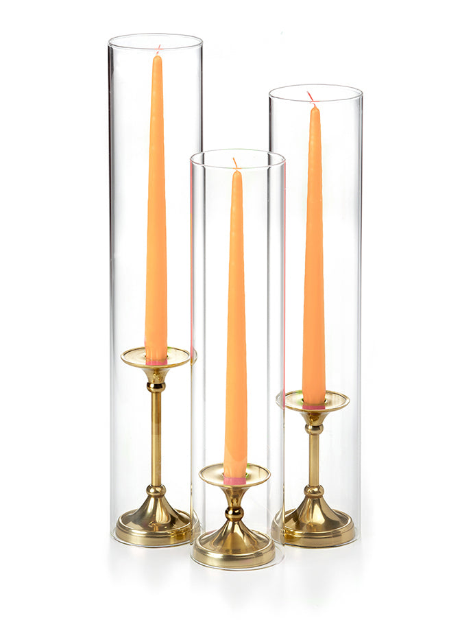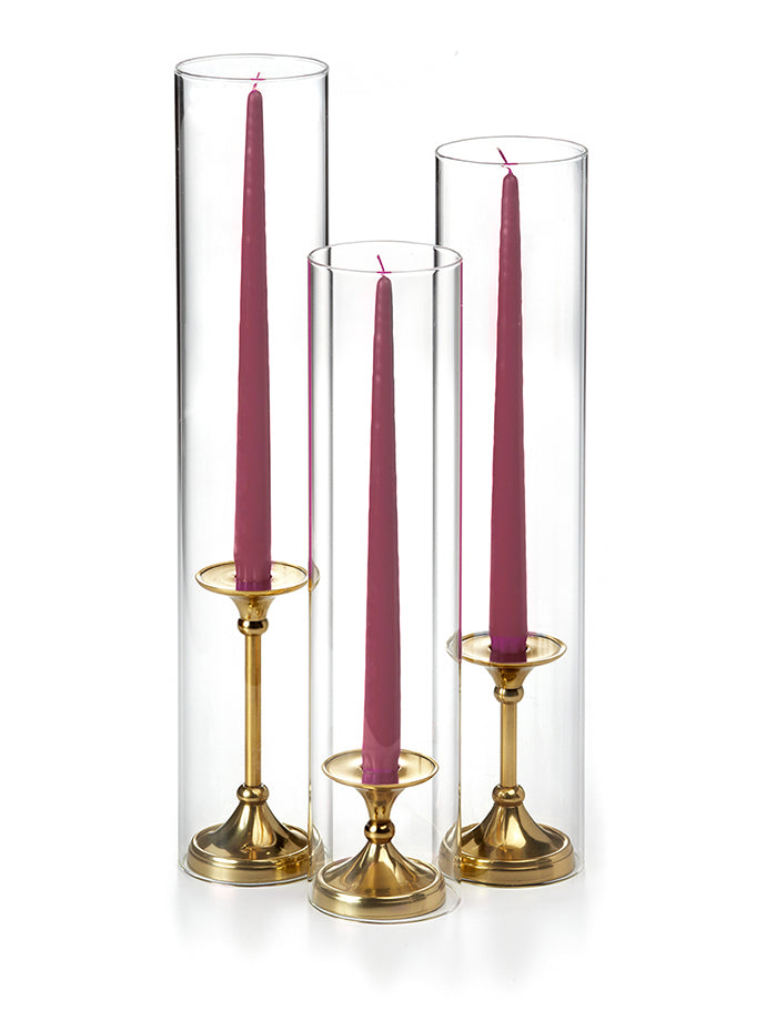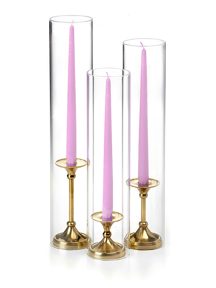 The timeless taper holder is the newest addition to the Yummi candles family of centerpieces, and it's the perfect way to add elegance to any event. The gold finish is beautiful and will complement any decor, while the staggered height creates a cascading effect that is sure to impress guests. This set includes 12" taper candles and can be used with all heights of taper candles and formal candles. The holder is also designed to fit Yummi 2.25 slim pillar candles, so you can create the perfect ambiance for your special occasion.