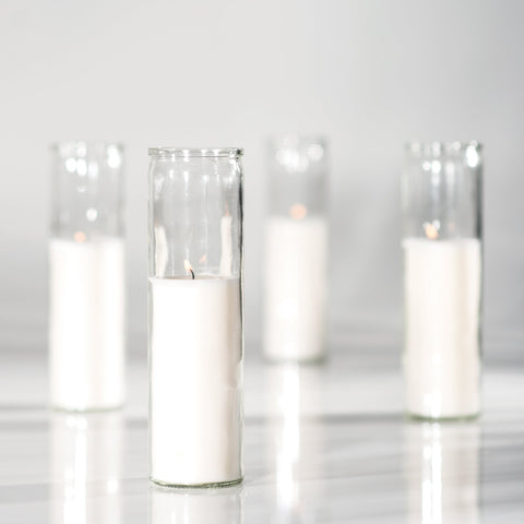 Never leave a burning candle unattended. Avoid burning candles near combustible materials.  Always store candles in a cool, dark, dry place. They should be stored flat to prevent warping. Do not place candles in drafts to prevent rapid and uneven burning and excessive dripping. Always keep wicks trimmed to one-half inch. Long or crooked wicks cause uneven burning and dripping.  Candles will fade if left in the light for an extended period. Never put candles in a window or directly expose to bright outdoor light or indoor spotlights. Candles should always be burned in proper candle-holders or bases and should be a minimum of two and a half inches apart from each when burning outside a holder. Extinguish candles with a candle snuffer. If a wick becomes too short to light, carve away enough wax to expose the fresh wick, then trim 1/4" off the top of the candle and burn the candle to reform its appearance (tapers are the exception to this rule).