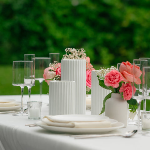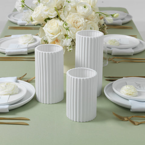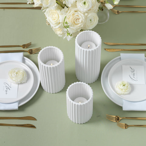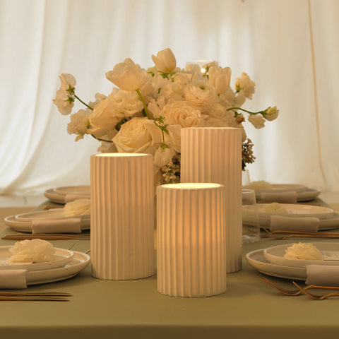 For event and wedding planners, this collection offers a seamless way to elevate any setting. Whether lining an aisle, illuminating reception tables, or enhancing an intimate dinner, these sleek ceramic cylinders allow candlelight to flicker beautifully within, casting delicate shadows that shift and move like the gentle rhythm of the ocean. Their smooth matte finish and minimalist design make them versatile enough to complement both grand celebrations and understated gatherings, blending effortlessly into any theme—be it modern, classic, or rustic elegance.