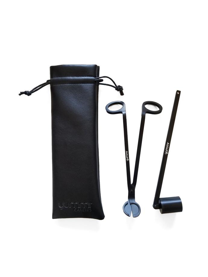 This candle care accessories kit includes everything you need to optimize the longevity of your favourite candles. Trim candle wicks stylishly with this modern take on a traditional essential. Sleek and streamlined, the black matte-finished trimmer keeps wicks at their optimal burning length, helping candles burn cleaner. Extinguish candles elegantly with this ultra-modern take on an old-fashioned essential. The long, slim handle of both the snuffer and trimmer reach deep pillar candles, lanterns, and other holders to trim and extinguish candles with minimal smoke, and with ease. Combined, this sleek set is as attractive as it is functional—the perfect addition to any candle-lover’s collection.